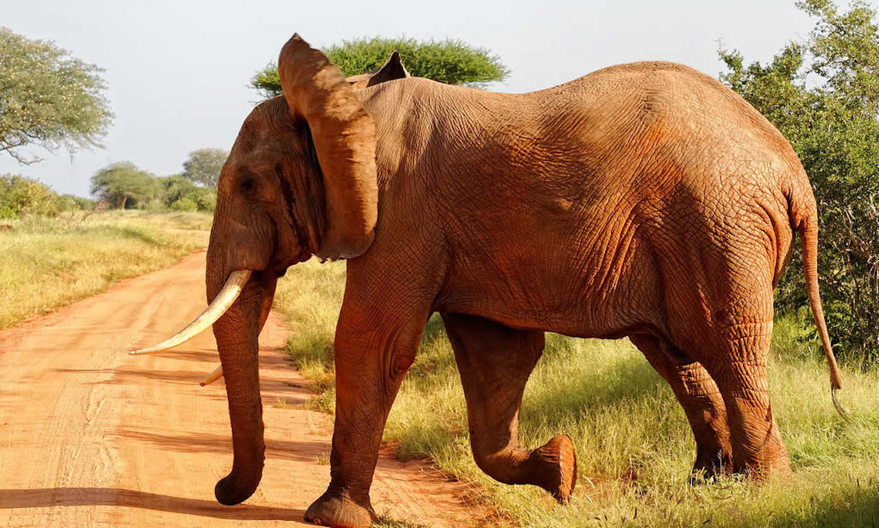 Tsavo East National Park is larger than Tsavo West National Park, covering an area of 13,747 square kilometers and one of the oldest parks in Kenya, generally flat, with dry plains across which the Galana River flows attractive features like Yatta Plateau and Lugard Falls.